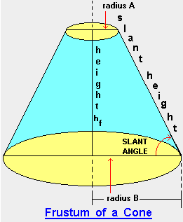 圆锥台体积= (π • 高height • (Ra^2 + Ra • Rb + Rb^2) / 3)